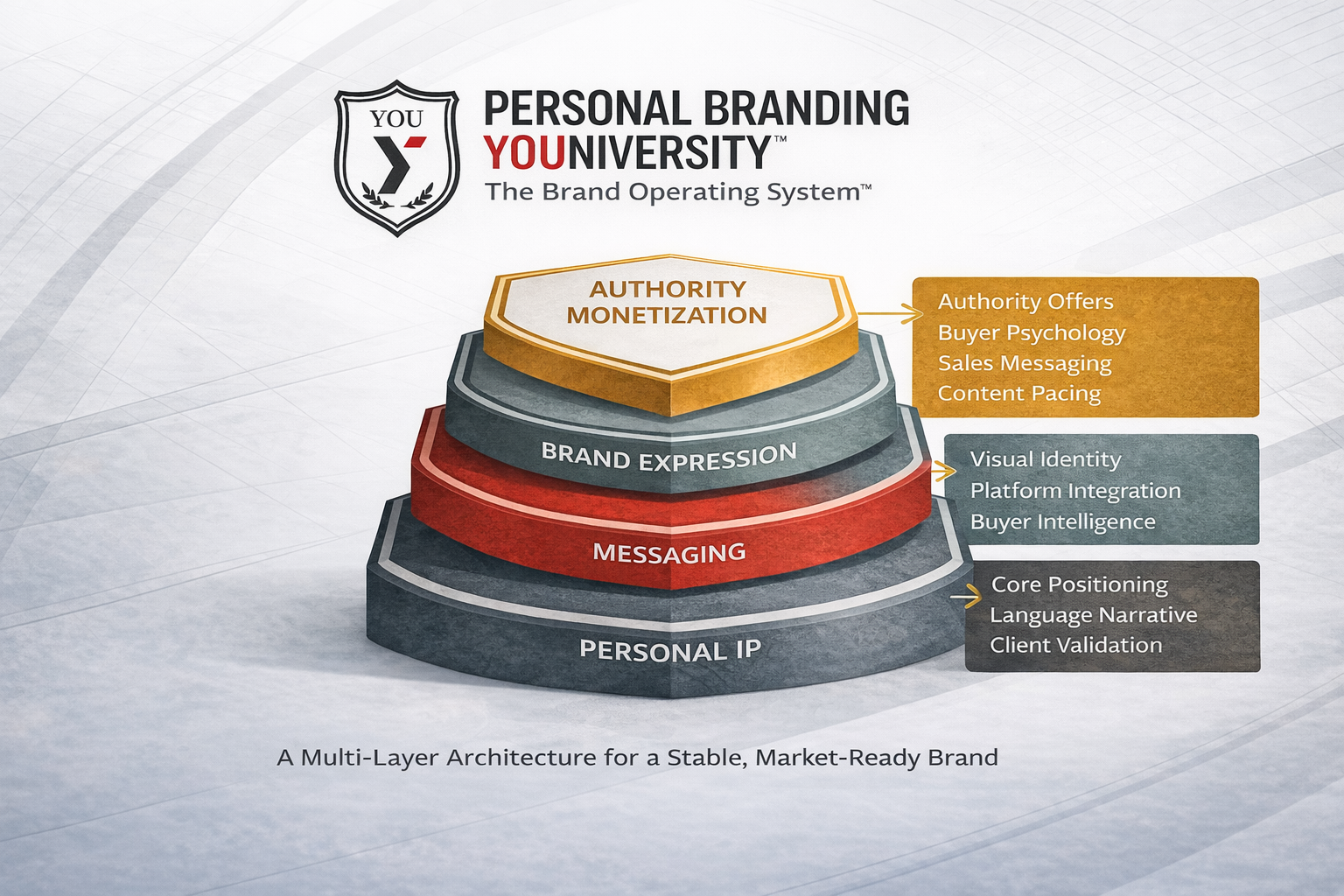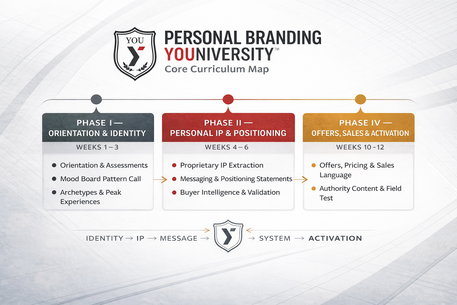 Personal Branding YOUniversity™ is a 12-week, identity-driven brand education program for professionals ready to translate experience, authority, and insight into a coherent brand system that actually works in the market.