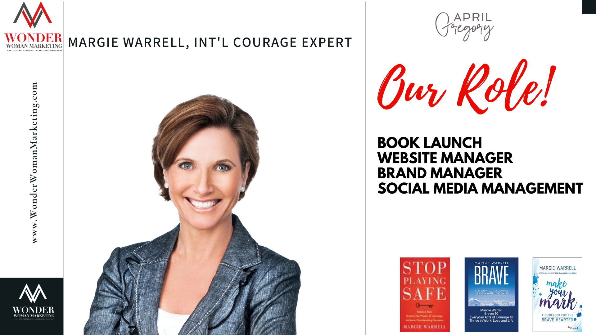 April Gregory, Portrait of [Your Name], a brand and marketing strategist, owner of Wonder Woman Marketing, and creator of the Signature Offer and We Wrap Station.